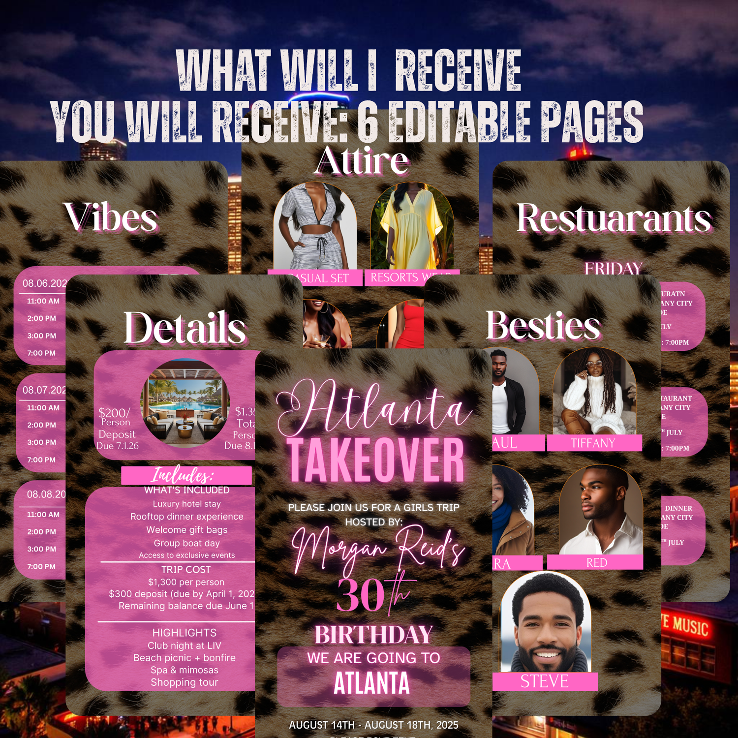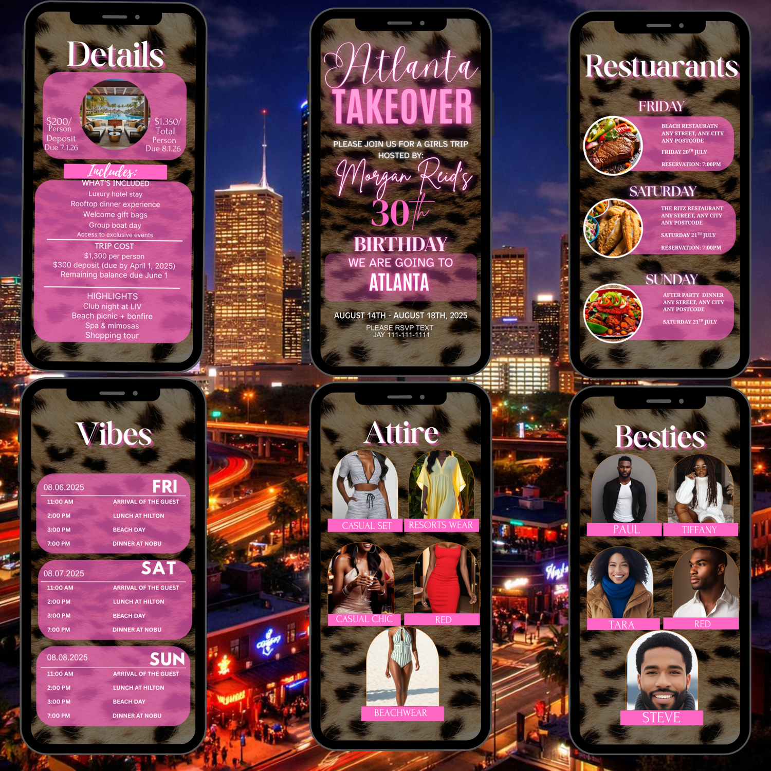 Celebrate your birthday getaway in style with this vibrant ATLANTA trip invitation. Eye-catching, this design makes the perfect announcement for a girls' trip, bachelorette adventure, or milestone birthday celebration. The striking color combination and modern aesthetic set the tone for an unforgettable journey. Ideal for creating buzz and excitement among your guests before the trip begins.