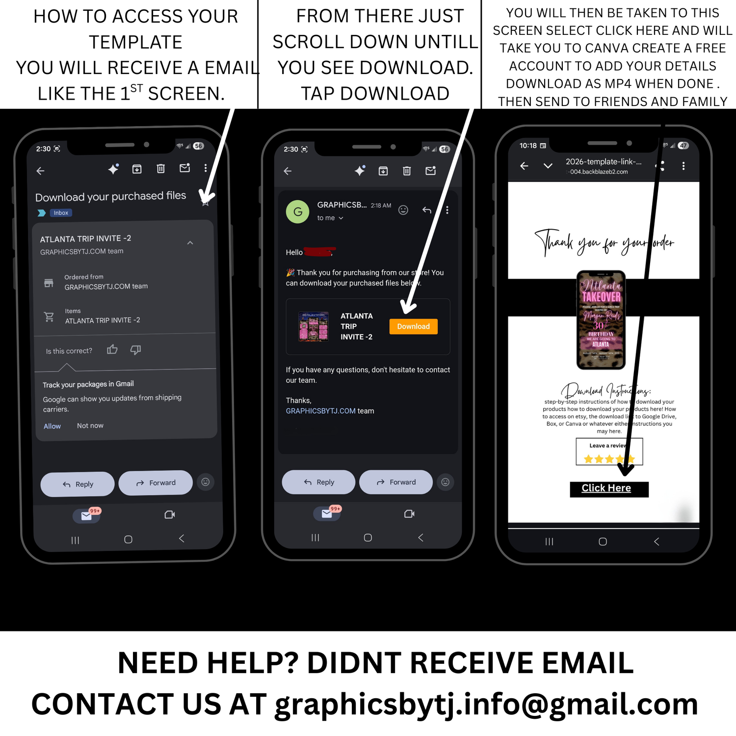 You will receive a Canva template that you can edit yourself using a FREE Canva account. Which you will then downlaod and send to guest.
