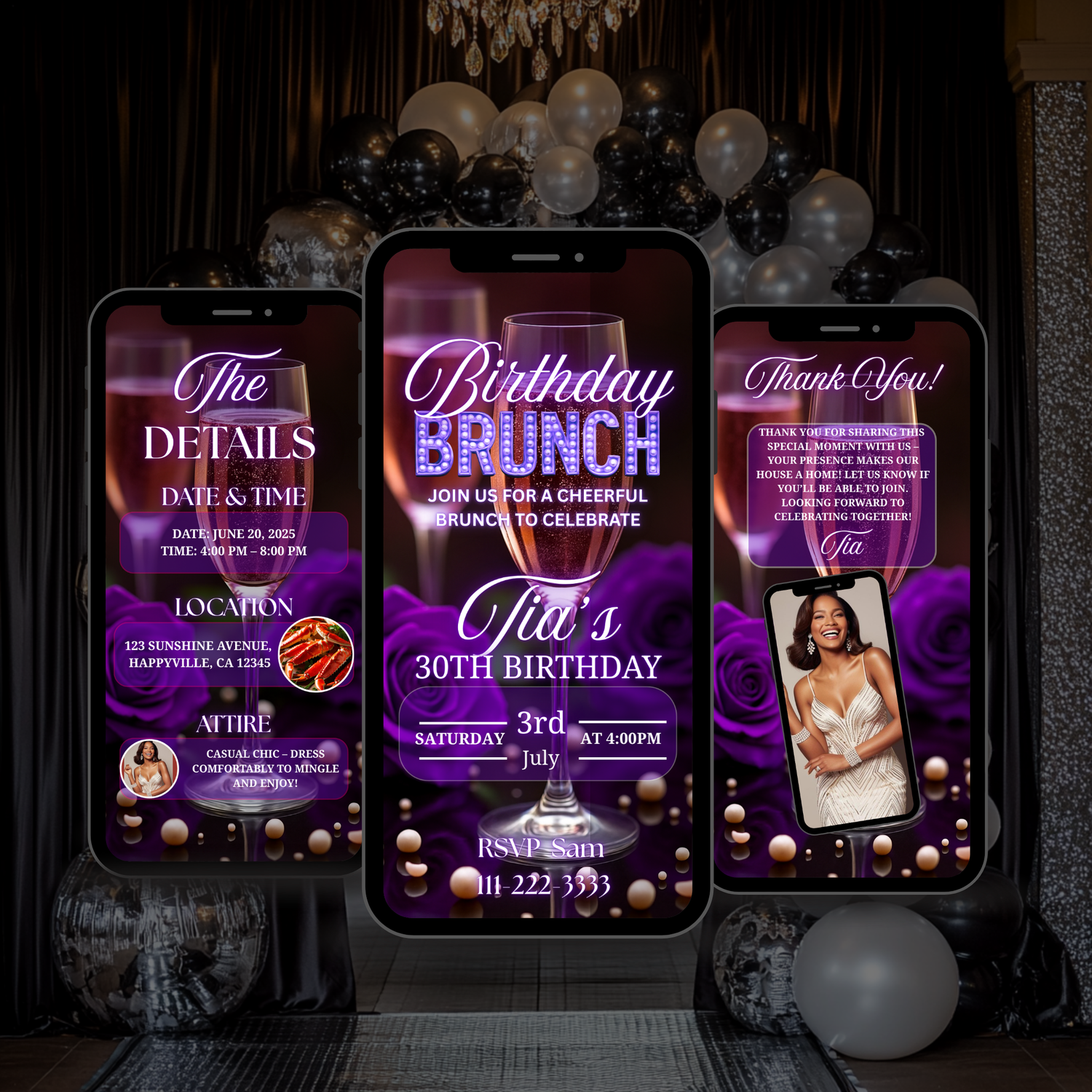 You will receive a Canva template that you can edit yourself using a FREE Canva account. Which you will then downlaod and send to guest.
