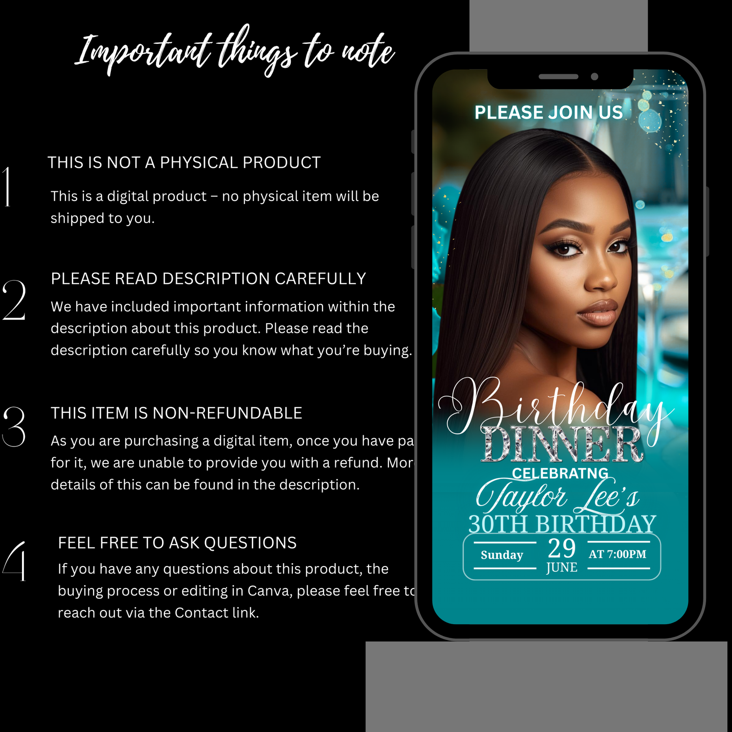 Celebrate in style with this charming birthday invitation. Designed for effortless customization, this digital template lets you personalize every detail to match your vision. Simply download, edit text and dates, and share via email or print for an elegant touch. Perfect for milestone birthdays, intimate gatherings, or surprise celebrations. The soft, feminine aesthetic creates an inviting atmosphere that sets the tone for an unforgettable event. No design experience needed—just add your details and you're ready to impress your guests.