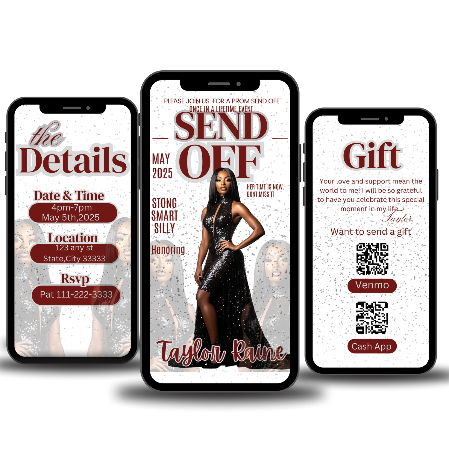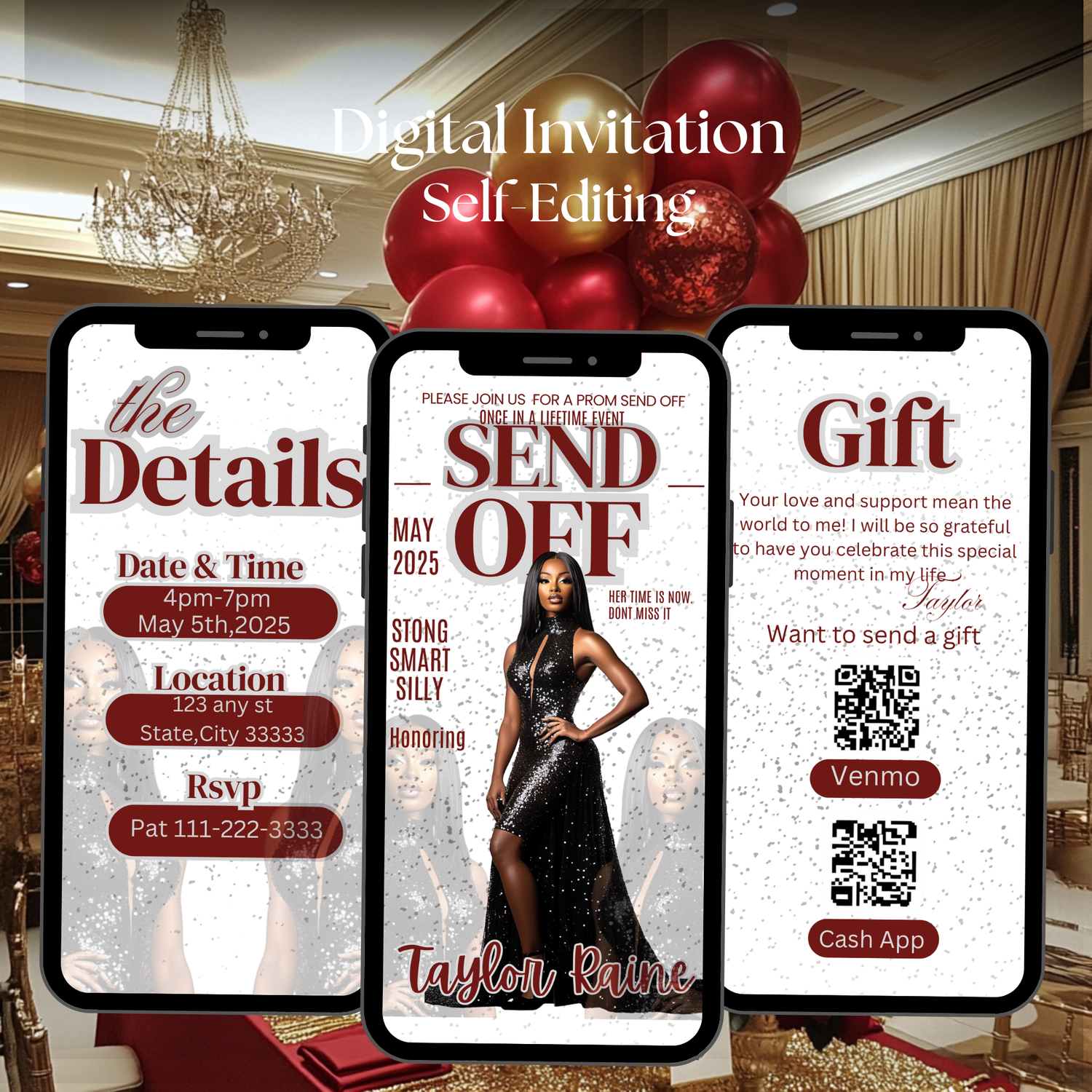 Celebrate in style with this elegant send off digital invite featuring a sophisticated red and white color palette. Perfect for milestone birthdays, intimate dinners, or upscale celebrations, this customizable design combines modern aesthetics with timeless charm. Simply download, personalize with your event details, and share instantly via email or social media. No printing required—save time and money while impressing your guests with a polished, professional invitation that sets the perfect tone for your special occasion.