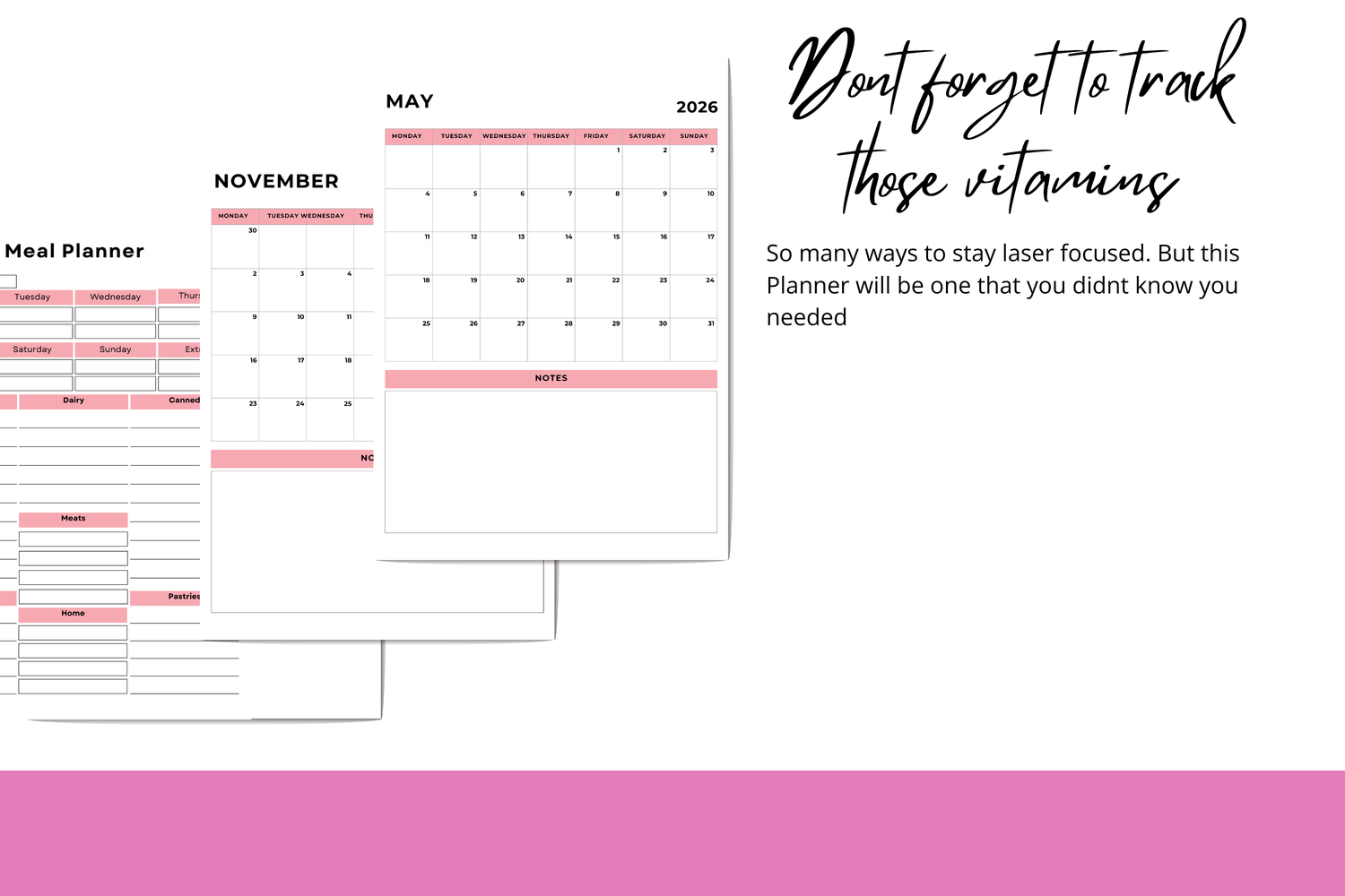 Stay organized and take control of your nutrition with this comprehensive 42-page meal planner. Whether you prefer pen and paper or digital planning, this versatile tool adapts to your lifestyle. Map out weekly menus, track ingredients, and maintain consistent eating habits with structured planning pages designed for efficiency. Perfect for meal prep enthusiasts, busy professionals, and anyone committed to intentional eating. Streamline your kitchen workflow and eliminate daily guesswork about what's for dinner.