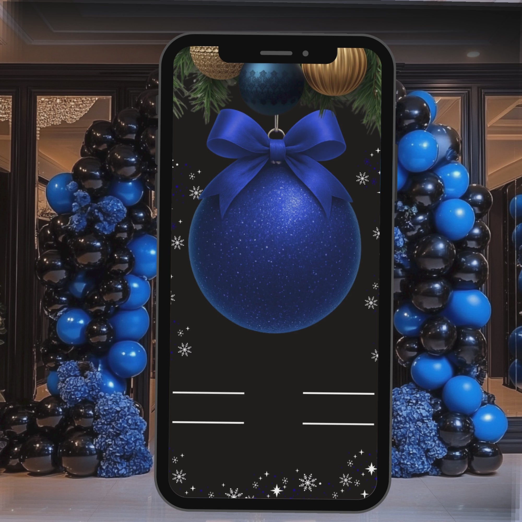 Personalized Friendsmas Blue Invitation, Holiday White Christmas Dinner Invite Digital Ornament, Editable Custom Animated Template-517