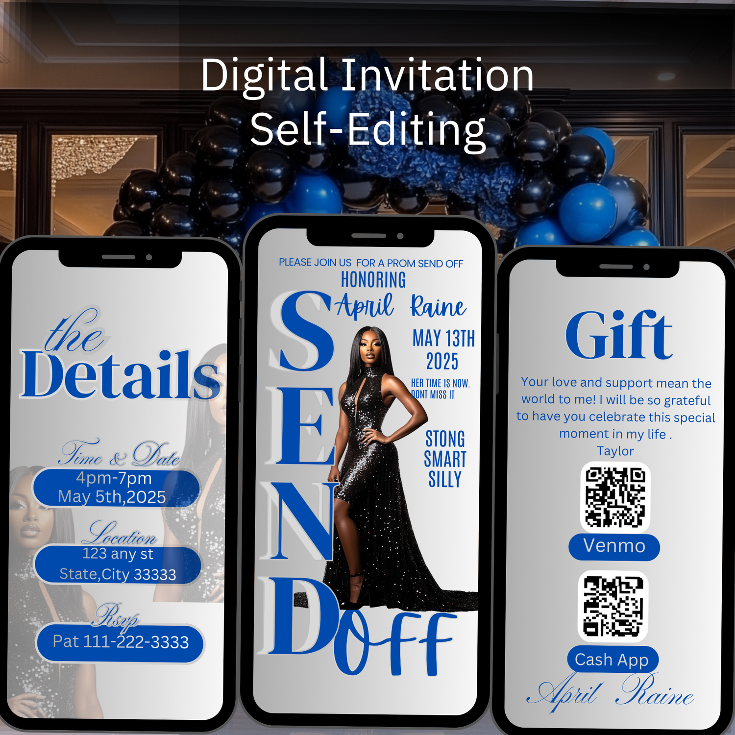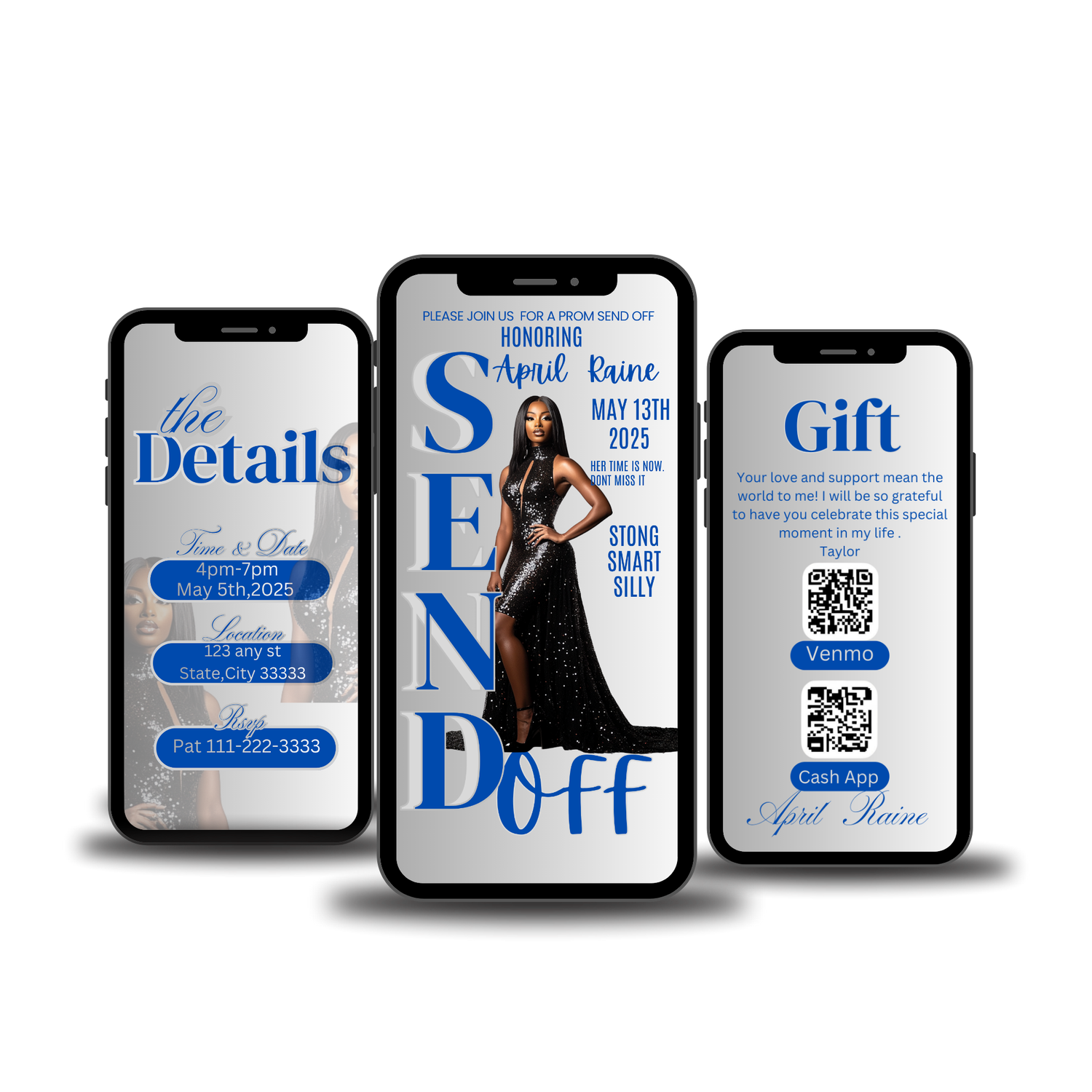 Celebrate in style with this elegant send off digital invite featuring a sophisticated blue and silver color palette. Perfect for milestone birthdays, intimate dinners, or upscale celebrations, this customizable design combines modern aesthetics with timeless charm. Simply download, personalize with your event details, and share instantly via email or social media. No printing required—save time and money while impressing your guests with a polished, professional invitation that sets the perfect tone for your special occasion.