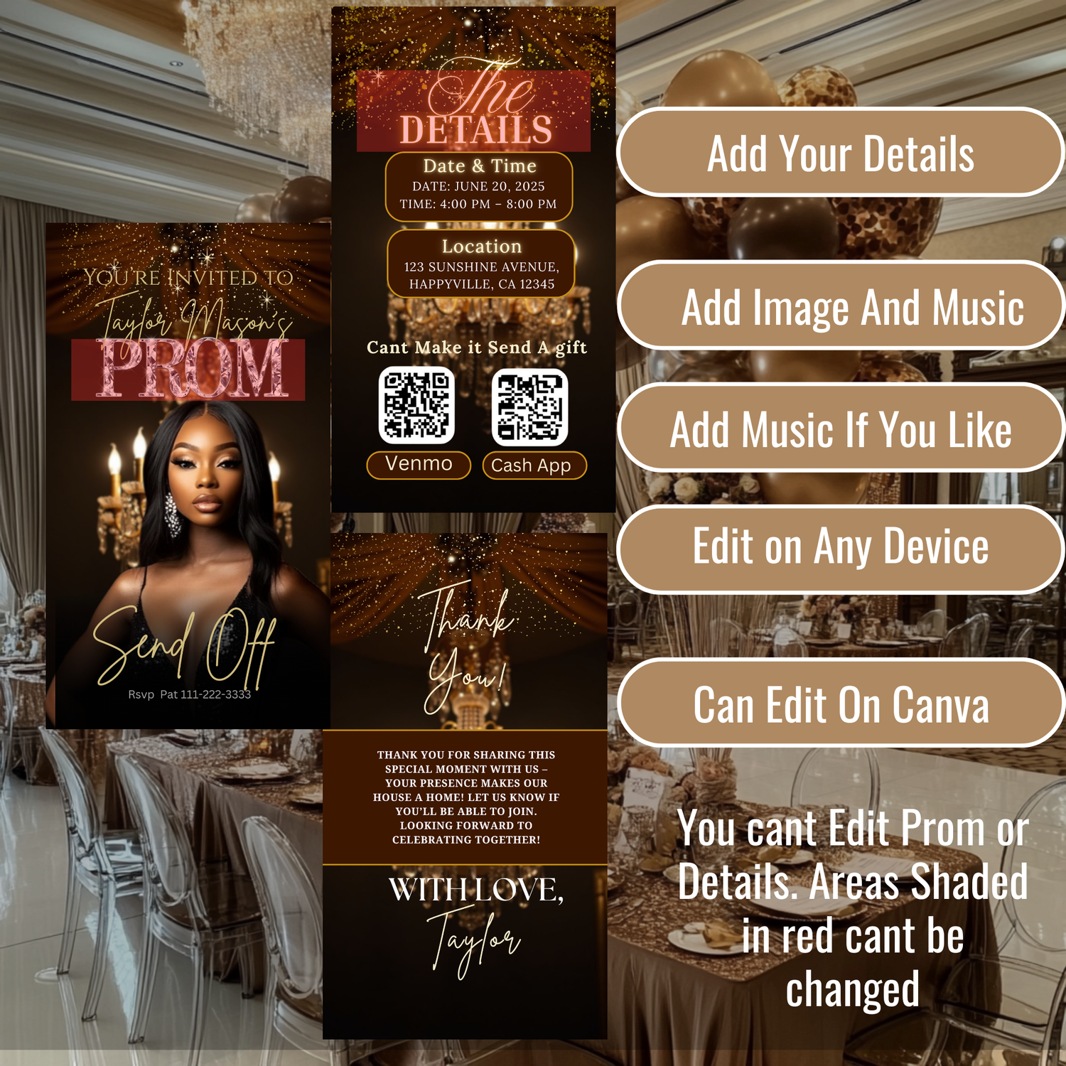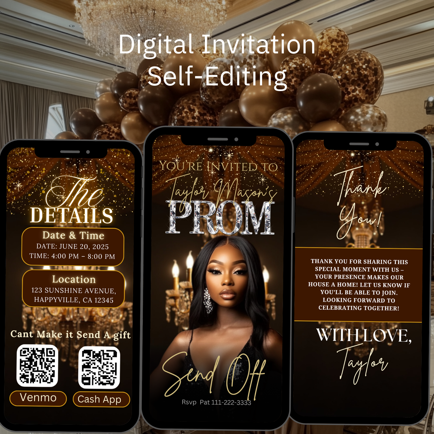 Celebrate in style with this elegant send off digital invite featuring a sophisticated brown and gold color palette. Perfect for milestone birthdays, intimate dinners, or upscale celebrations, this customizable design combines modern aesthetics with timeless charm. Simply download, personalize with your event details, and share instantly via email or social media. No printing required—save time and money while impressing your guests with a polished, professional invitation that sets the perfect tone for your special occasion.