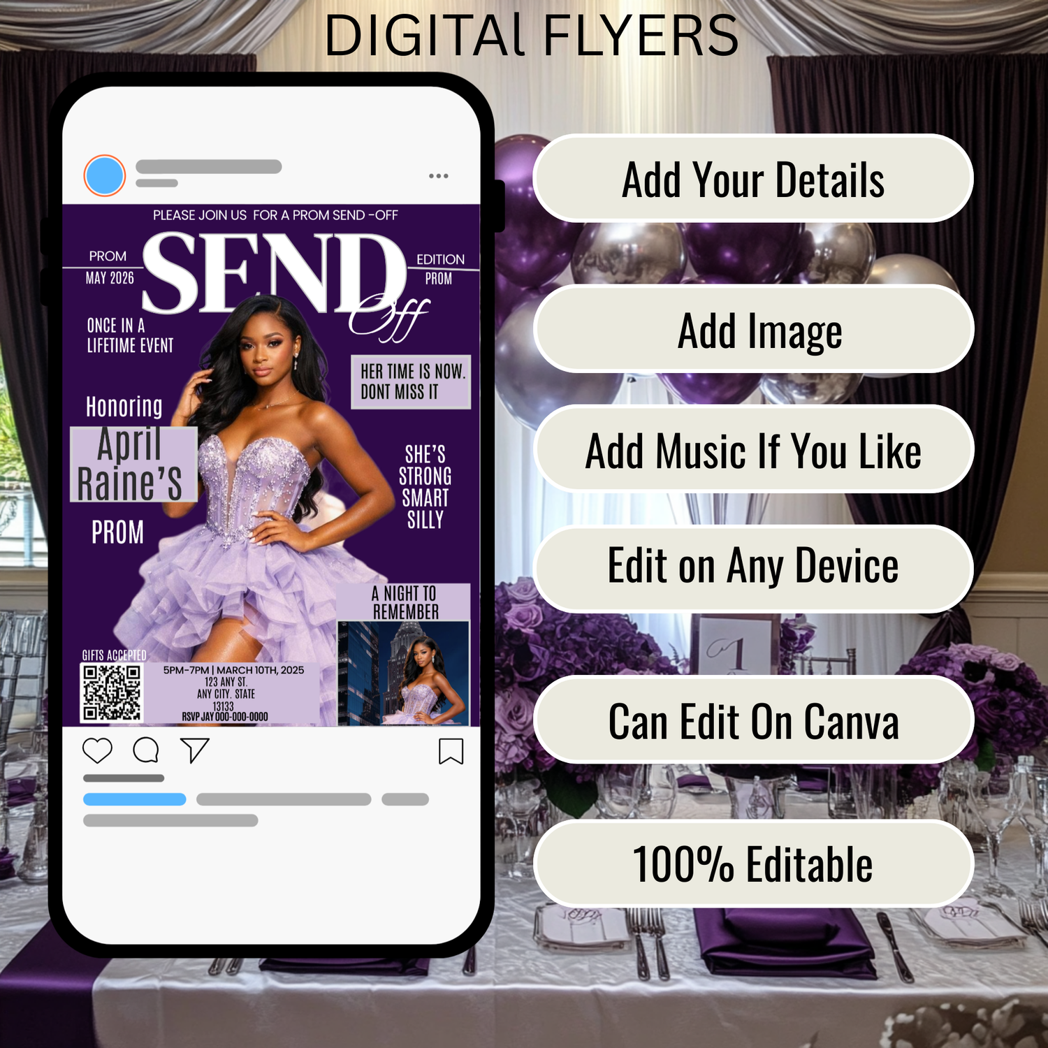 You will receive a Canva template that you can edit yourself using a FREE Canva account. Which you will then downlaod and send to guest.